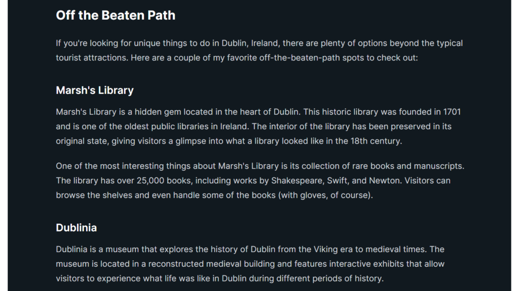 Take a look at the best A.I writer I have found so far. It is called KoalaWriter I am from Dublin and I never knew about Marsh’s Library! 😊