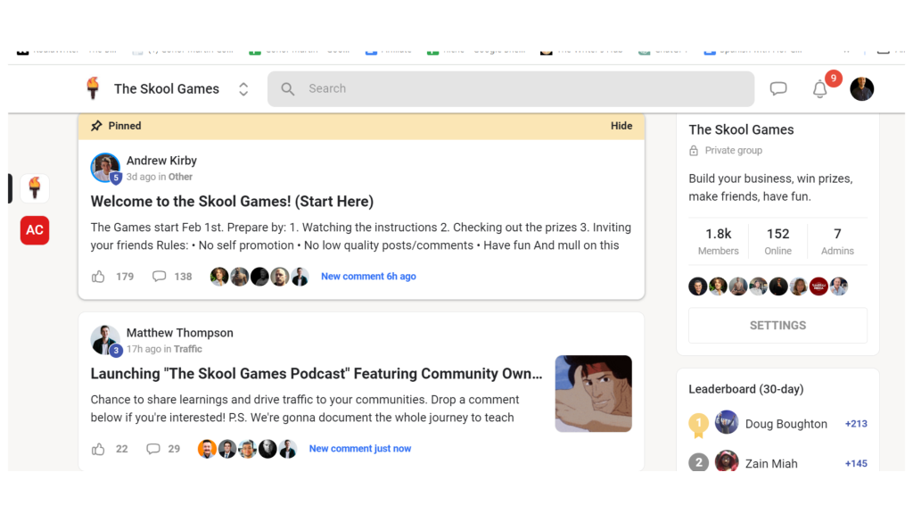 Skool Games is a new challenge launched by Alex Hormozi. To join in the games you need to create one group so the cost is $99 per month. You can sign up with a 14 day free trial for the Skool Games here.